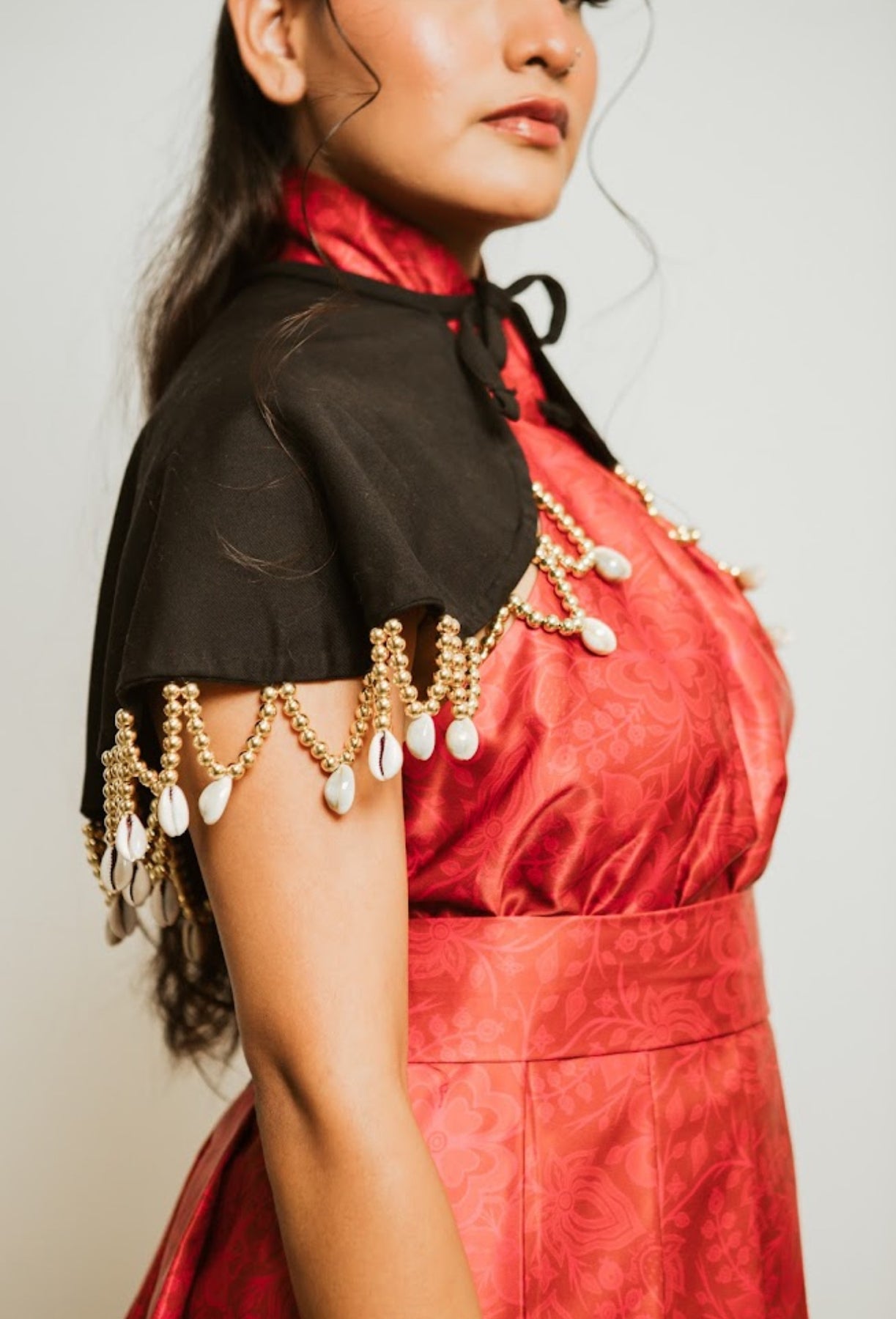 Collar clips are not included. One size, edged with gold beads and megis shells.